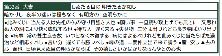 ●此みくじに当たる人は先祖の仏の守り目強き人也