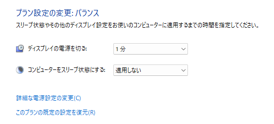 この状態で、電源オプションで「ディスプレイの電源を切る:」を1分に設定する。これで1分経過するとディスプレイの電源が切れる。